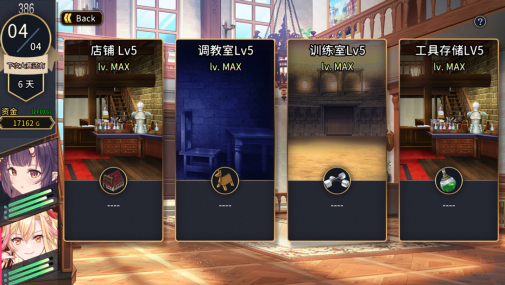 和传统RPG类游戏相比,本作也有一些“特涩”的设定。比如在打工的部分,玩家可以让奴隶在打怪与卖身中做选择,前者在得到少量金钱的同时能强身健体,提升战斗力,后者能提供数倍于常规打工的收入,但会降低自身属性。如果想要早早解锁更高级的打工/调教选项,就需要大量金钱去升级设施等级,而这似乎不可避免地要求玩家去压榨妹纸们的身体……