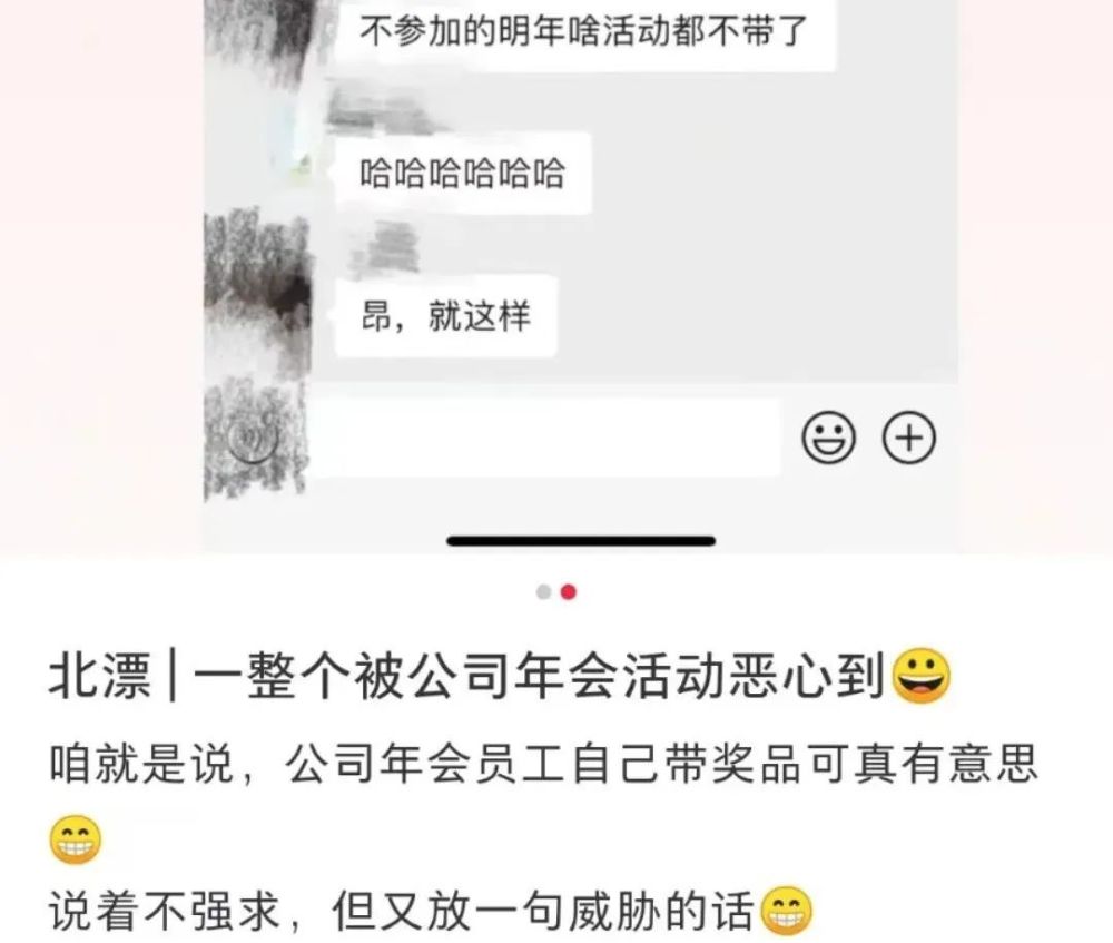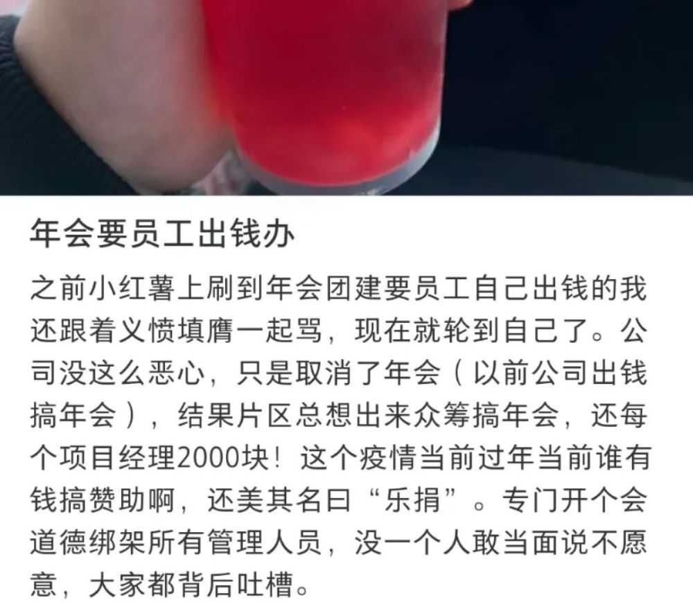 博主@是小月亮呀?年前刷到年会团建要员工自己出钱的吐槽,还跟着义愤填膺地一起骂,结果现在同样的糟心事儿就落到了自己头上。