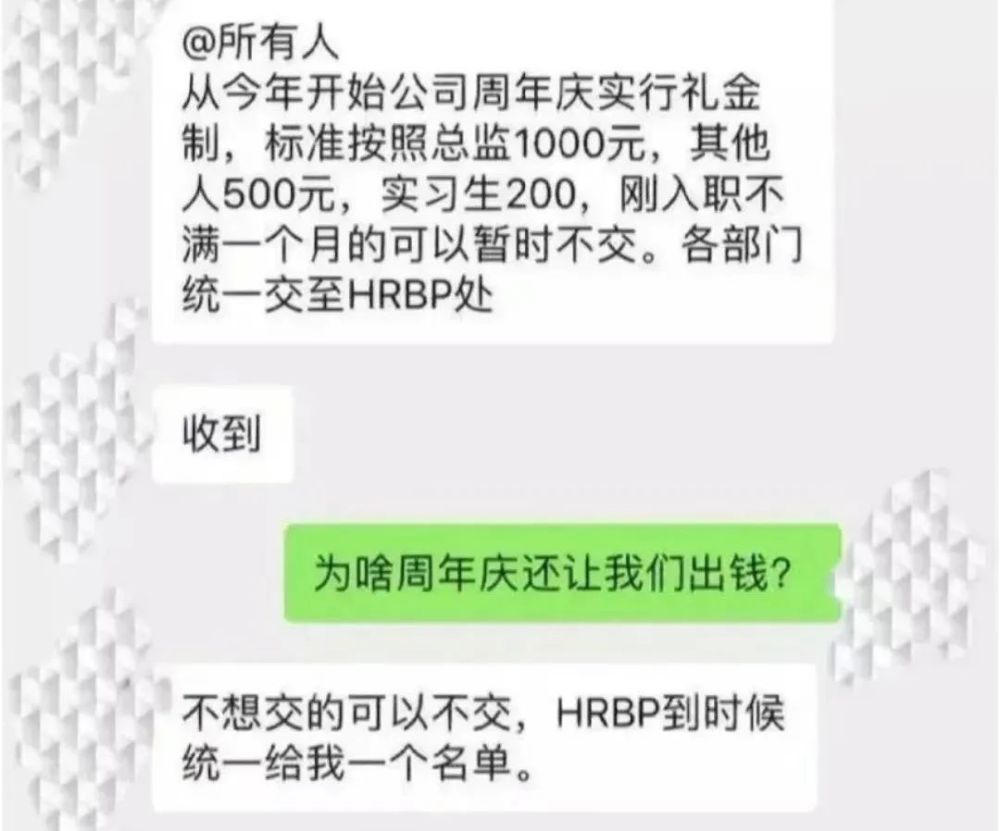 有公司美其名曰“礼金制”,连实习生都得交钱资助年会。虽说是自愿,但不交的必然得记上“死亡笔记”秋后算账。