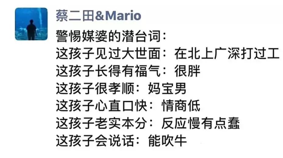 防火,防盗,防妈(爸)宝,请大家相亲时睁大眼睛,如果遇见,潇洒走开!