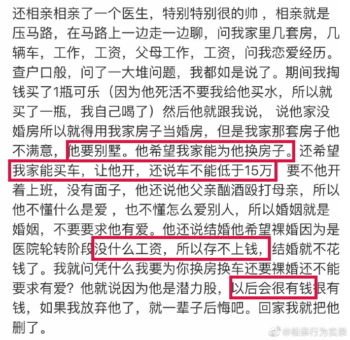 嘴上说着曾为一人毁一城,实际软磨硬泡想从相亲对象身上薅羊毛。