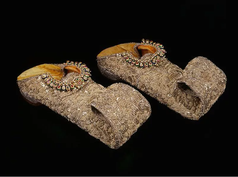 16. 这双鞋曾经属于18世纪海得拉巴的尼扎姆。它精致的设计极其复杂,和你以前见过的任何东西都不一样。整只鞋都是用金线绣的,上面镶嵌着大量的红宝石、祖母绿、钻石和其他昂贵的宝石。这双价值16万美元的鞋子是多伦多一家博物馆的财产,但被盗了。幸运的是,他们被找到了,但在这个过程中受到了一些损害。