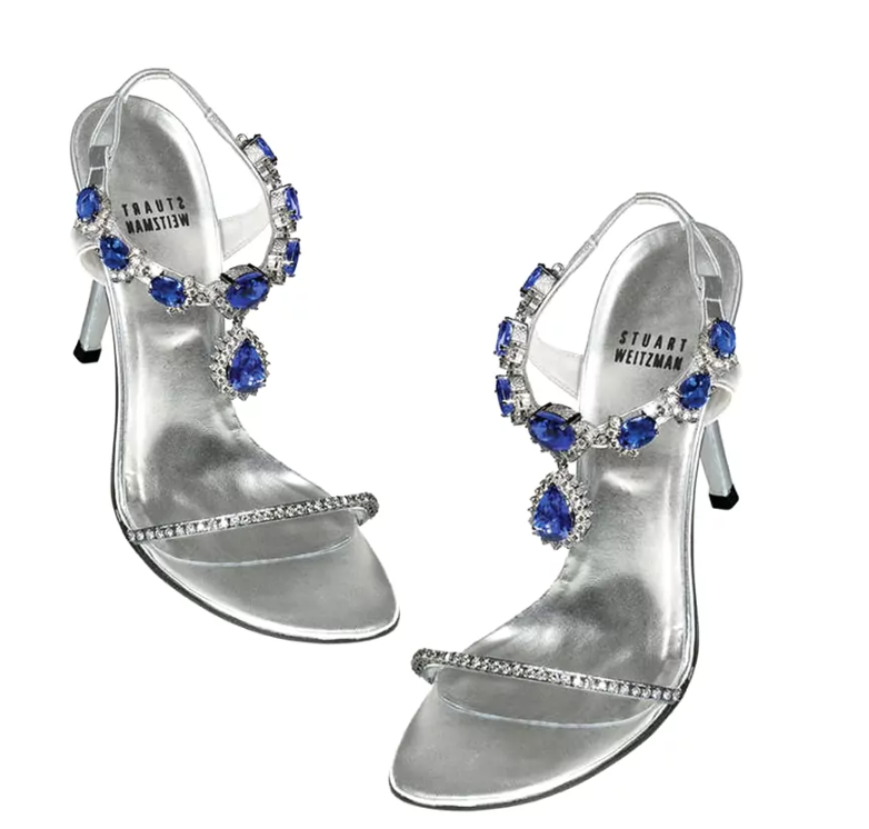 7. 这是STUART WEITZMAN第三次上榜,这双细高跟鞋是Eddie Le Vian和WEITZMAN合作的产品。这双高跟鞋价值200万美元,绝对值得一看。毕竟,它们用坦桑石——一种外观非凡的宝石来装饰,怎么可能不是呢?表带由185克拉坦桑石和28克拉钻石组成。让这些鞋子更有吸引力的是,它们是由闪闪发光的银色制成的,给它们一种精致、空灵的外观。