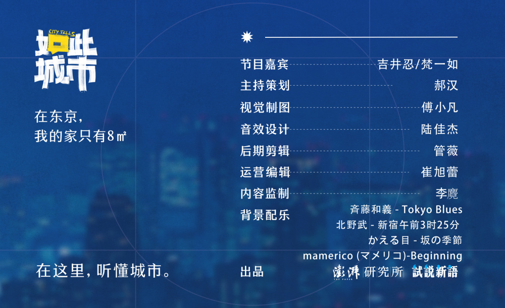本期如此城市CityTells邀请了吉井忍与梵一如,从城市变迁与居住空间延展的角度出发,回望城市中居住状态的变迁,以及8平米外延展出的广阔生活。