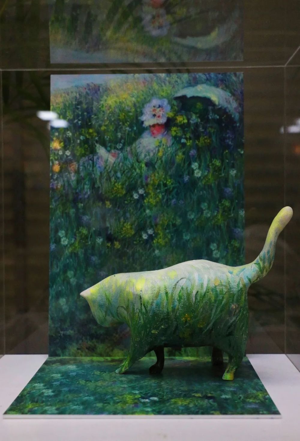 在西方式的墨可作品中,我们选用了莫奈的一幅画作为背景,墨可的身体变成了与莫奈对话的画板。每一笔涂抹的力道,都诠释着我们对莫奈艺术作品更深的理解。以画会话,这种对话形式跨越了时空,滥觞于真挚和浪漫。对大师绘画的每一笔模仿,都是一种自我的深刻疗愈。我想,如果莫奈能看到墨可,他也一定会喜欢的。最终两组墨可在一起,交织成为映射中西艺术文化的作品。但无论形式怎么变幻,主体还是墨可这只小猫,就像我们对世界的态度一样,任它风云诡谲,洪波涌起,我们始终像墨可一样真实可爱,我想这也是我们想传达的态度吧。