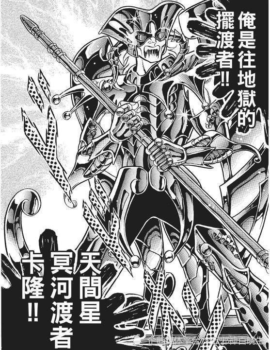 当年看《圣斗士星矢》冥王篇,在星矢和瞬他们初入冥界时,这名反复横跳的逗比冥斗士给我留下了深刻的印象,他就是天间星冥河读者卡隆。