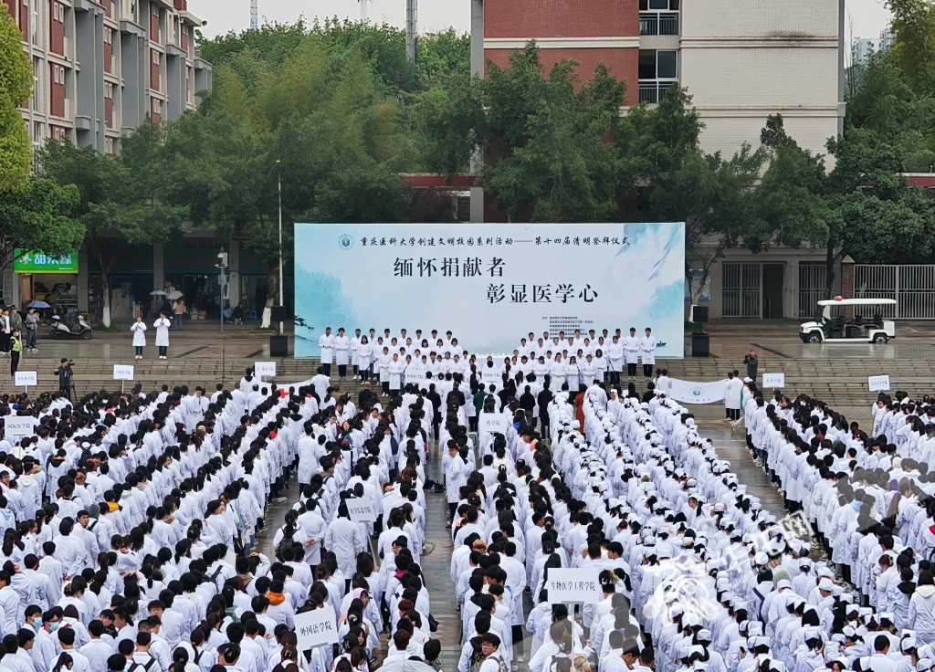 3月31日,重庆医科大学在该校缙云校区举行“缅怀捐献者,彰显医学心”清明祭拜仪式。现场,4091名医学生向“大体老师”默哀致敬。