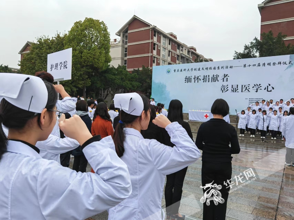 重庆医科大学“缅怀捐献者,彰显医学心”清明祭拜仪式现场。华龙网-新重庆客户端记者 谢鹏飞 摄
