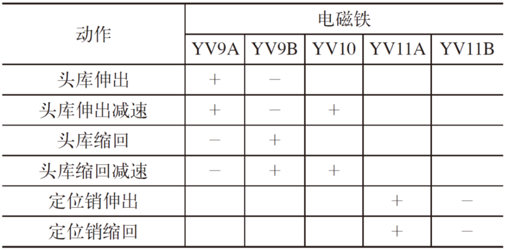 各个动作的执行需要由电磁阀进行控制。具体见表2。