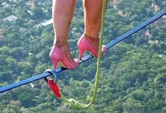 2.穿高跟鞋走钢丝最远。极具挑战性的一个纪录,那就是穿高跟鞋走钢丝,大家知道高跟鞋走路都会让脚很难受,更别说走钢丝了,想想就让人“心有余悸”!