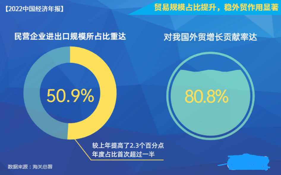 根据海关总署发布的信息显示,截至2022年,我国有进出口实绩的外贸企业59.8万家,其中民营企业51万家,民企业全年进出口21.4万亿元,占进出口总值的比重达到50.9%。