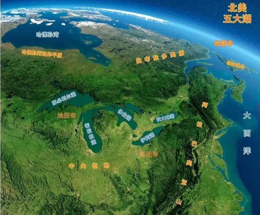 从地理上来说,五大湖位于美国和加拿大的交界处,今年72%位于美国,28%位于加拿大(其实除了密歇根湖,其他四个湖都属于美国和加拿大的边界)。