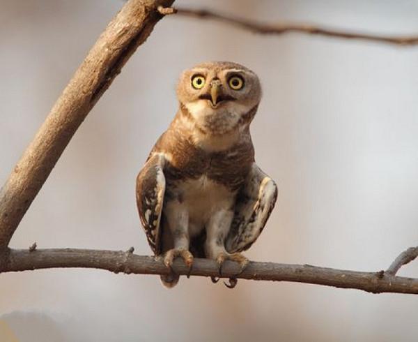 7、林斑小鸮:林斑小鸮小而矮壮,全长仅约23cm,是一种很标准的小型猫头鹰。自1884年最后一次观察到此鸟后,一直要到113年后的1997年才再现人世。被IUCN红色名录列为极危物种,估计种群数目不多于250头。