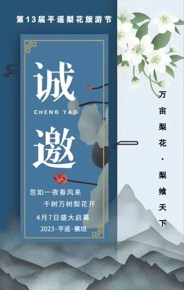 手机访问:wap.265xx.com4月7日盛大开幕!2023第13届平遥梨花旅游节精彩活动抢先看!