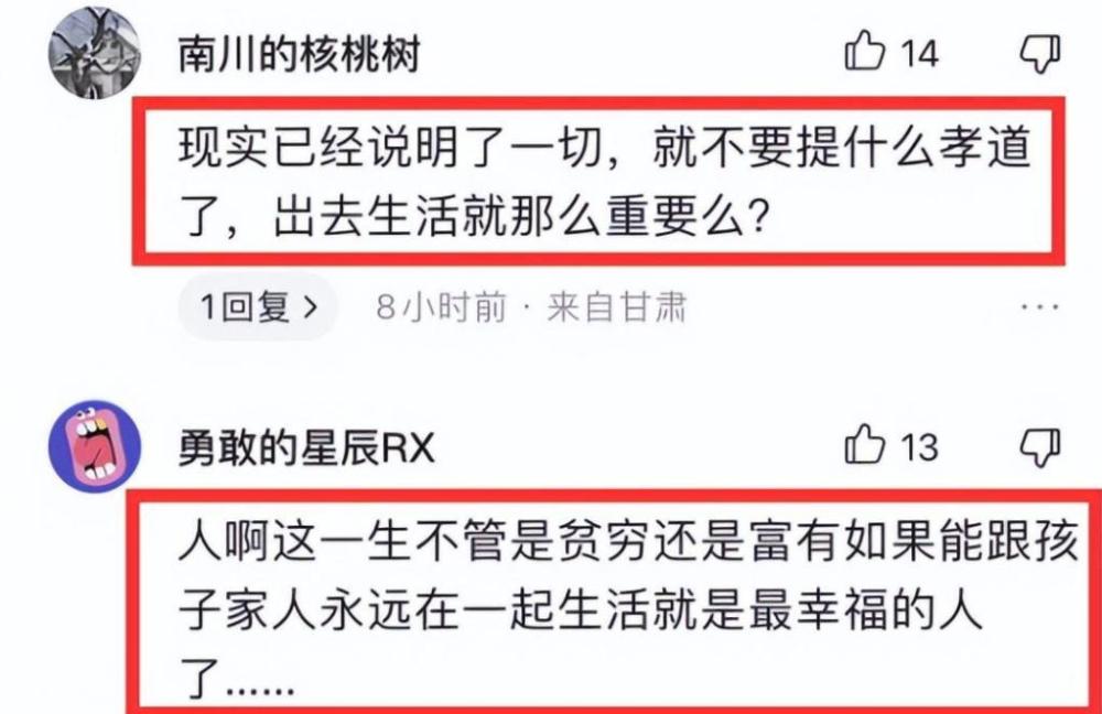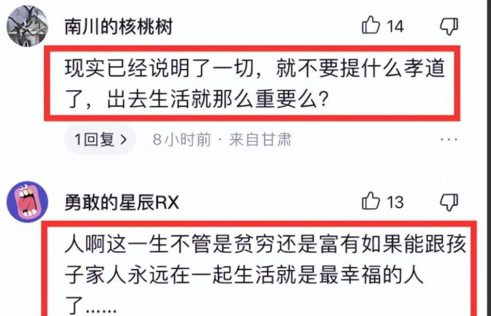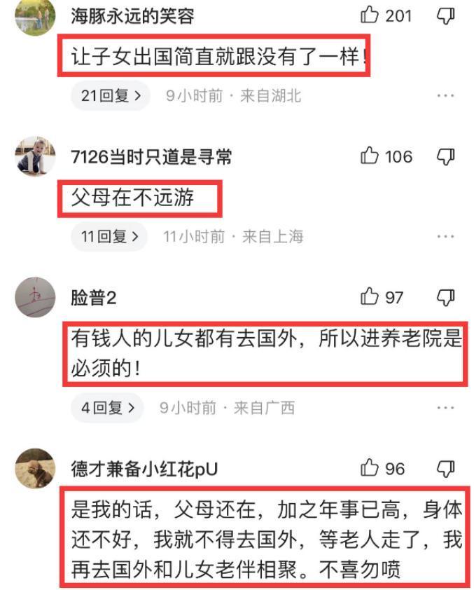 因此网友们认为,有于静江这样常年在国外的孩子,和没有孩子是一样的。也有网友表示,古话说的好,父母在不远游,你这常年在外,让父母怎么办?也有网友表示,如果非要去国外,毕竟父母年事已高,而且身体又不好,还有多少年能活呢?为什么不等老人走了以后再去国外享受生活呢?