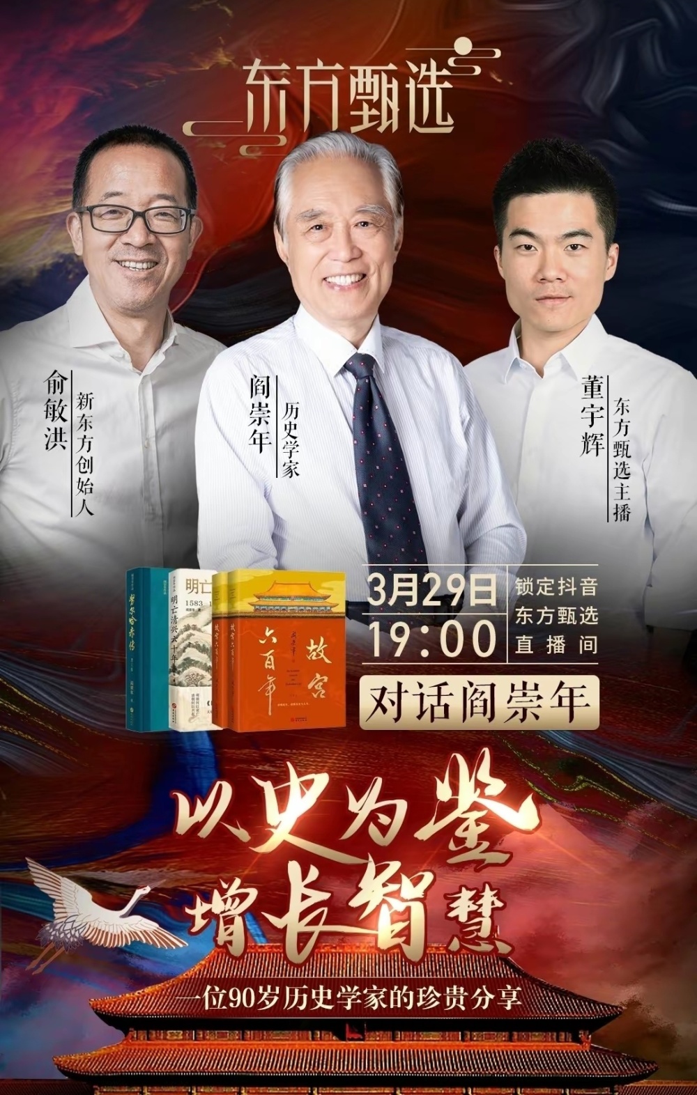 为了保证直播间29日可以正常直播,访谈90岁高龄的历史学家阎崇年,宇辉做出决定:“今晚主打聊天。”