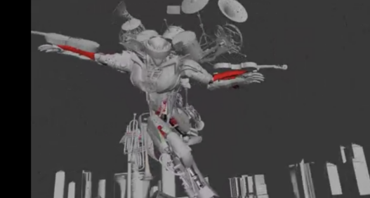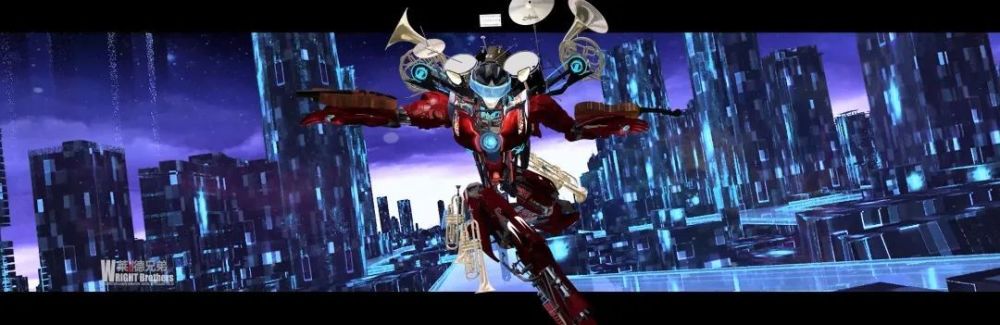 莱一德动画团队投重本为本次元宇宙音乐会精心设计了原创IP角色——元宇宙变形金刚。IP角色是由众多交响乐乐器元素,通过变形金刚变形手法组合变成一位炫酷的变形金刚人,带着元宇宙VR眼镜,用裸眼3D的设计手法,从元宇宙星云幻变出来,冲出画面。设计制作运用了3D骨骼绑定动捕系统、三维精密建模、变形金刚原创虚拟机械系统等技法,科技感精致酷炫,呼应音乐会的动漫主题。同时虚拟设计了一个元宇宙广州天河中轴线的超级数字场景空间长镜头,呼应“宙响天河”主题。