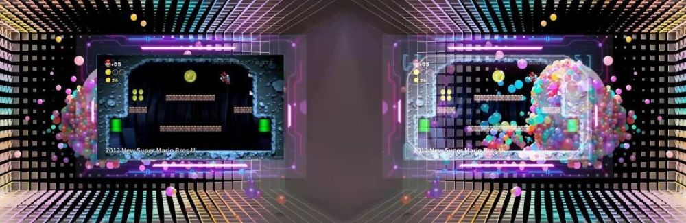 《超级马里奥》则演绎了伴随着游戏更新迭代,各个年代的各种电视机显示屏幕的更新迭代演变过程(老式天线电视机——第一代电脑显示器——超薄电视机——液晶显示屏幕——数字全息透明屏),使节目带领观众进入到各个游戏时代的回忆中,趣味生动。当这首节目演出完,全场欢呼,老中青都非常喜欢的游戏乐曲和节目。