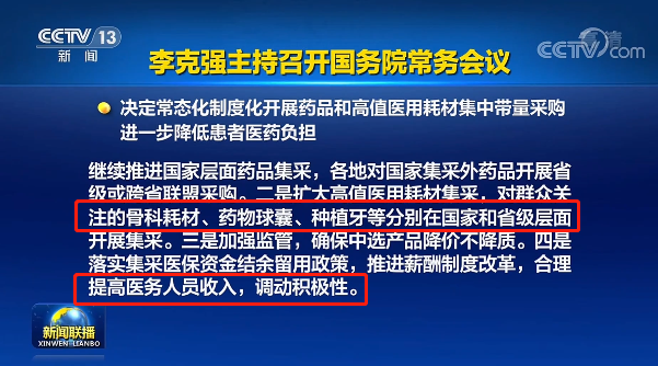 2022年1月10日,国务院总理李克强主持召开国务院常务会议,决定常态化制度化开展药品和高值医用耗材集中带量采购,进一步降低患者医药负担。