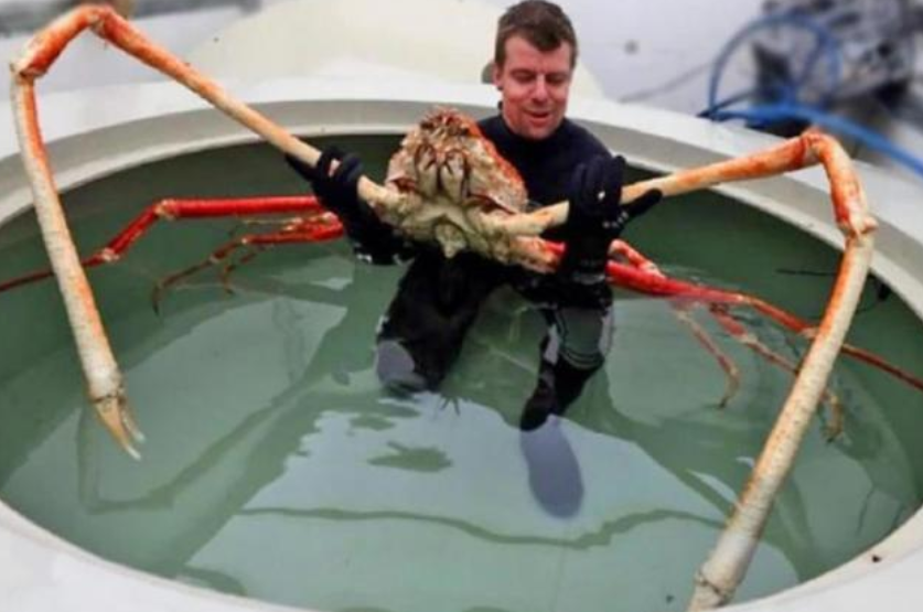 这种蟹叫做巨螯蟹,这种蟹生活在日本,至今捕捉到最大的腿展开有4.2米,体长38厘米,重达20千克,寿命达到了100年。从它的长相你就知道它是一个具有硬实力的海洋选手,它的那把锋利而硬朗的大钳子,要是不小心被夹住了,那可能会危及到生命哦。