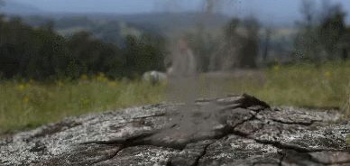 群鸟迁徙,山体在晃动,地面上裂开了缝隙,石头上还有水渗了出来。