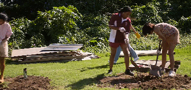 大姐头带众人种植农作物、挖厕所、用改装的跑步机发电。