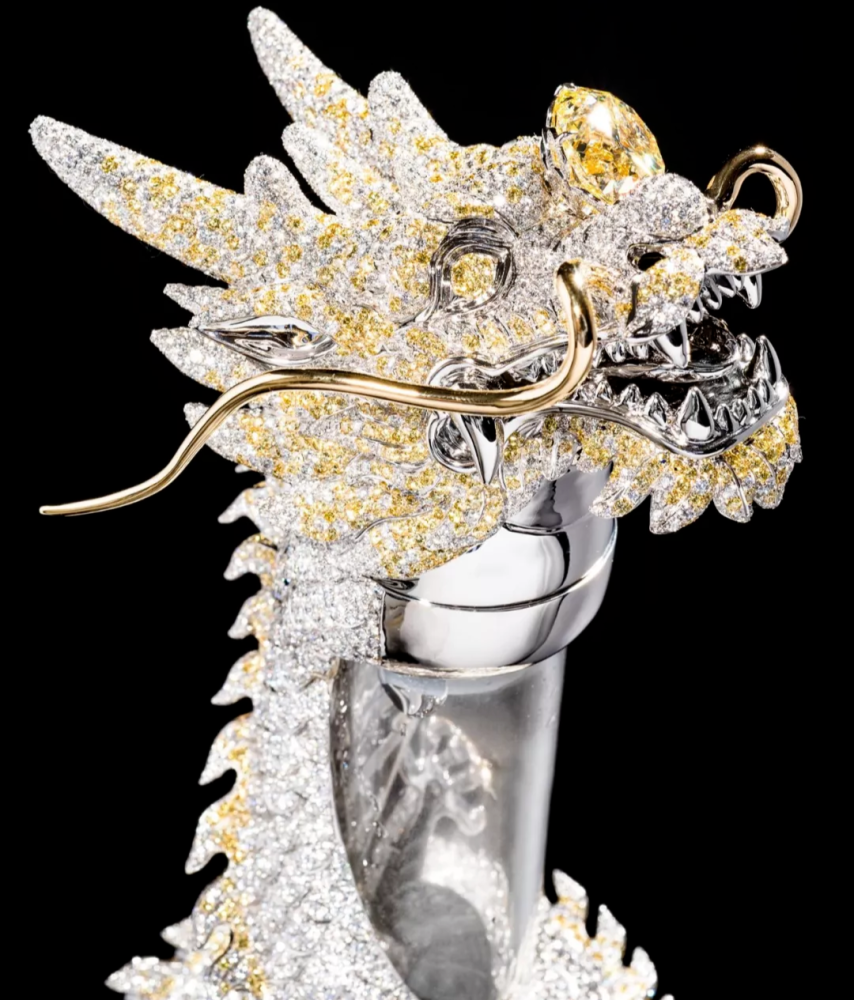 这瓶酒出自酿酒师米歇尔沃伦先生(Michel Warren)之手,他与纽约的斯卡塞利钻石公司合作推出了这款“巨龙之眼伏特加”。这款酒如此之贵,很大一部分在于它瓶身制作耗费的心思。