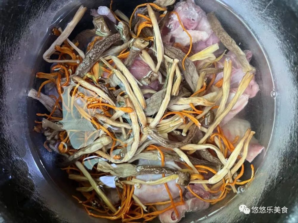 鸡肉,鹿茸菇,黄花菜,虫草花,食盐,生姜