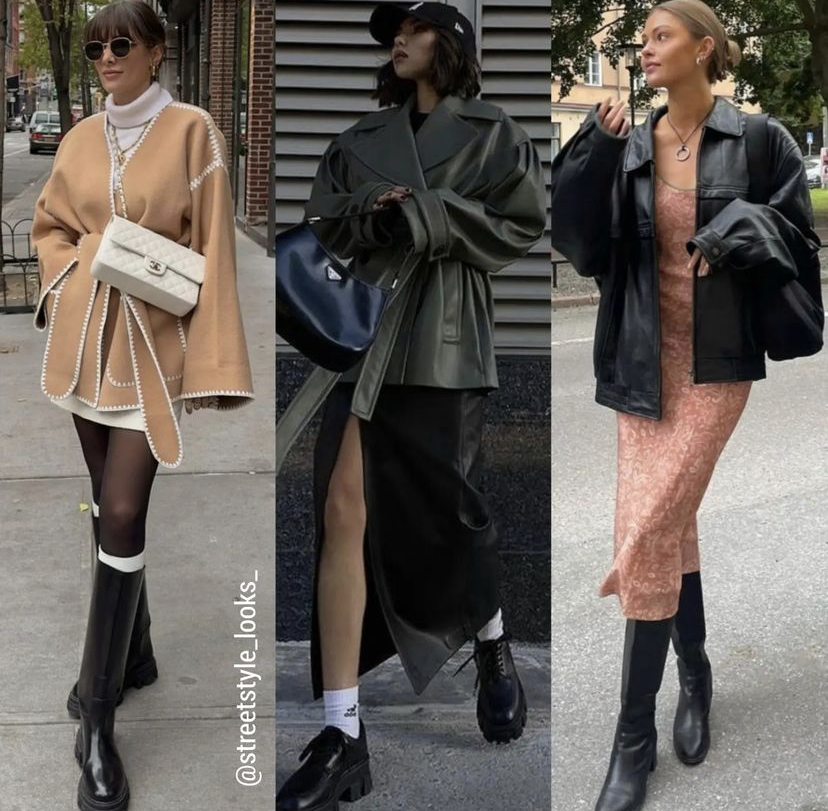 或是长度不同的连衣裙,可以用薄呢外套穿出温柔感,也能用有型皮夹克配连衣裙形成对比,穿法丰富也能发挥自己的搭配创意。