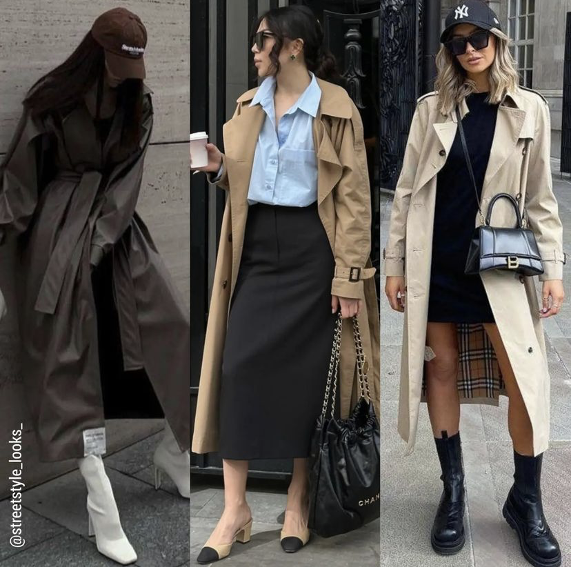 有一件帅气风衣,也是春天搭配裙子的好选择。可以从职业感的衬衫+半裙,再到直线款的连衣裙,都能跟风衣配合默契,穿出都市时髦女郎的感觉。