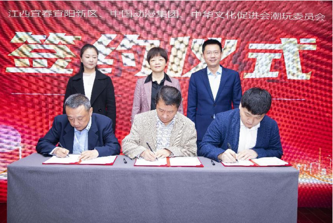 4月1日,江西宜春宜阳新区、中国动漫集团北京中文发文化发展有限公司、中华文化促进会潮玩产业委员会三方就“宜春市宜阳新区数字潮玩IP产业发展”签约仪式在义乌国际博览中心201会议厅举行。