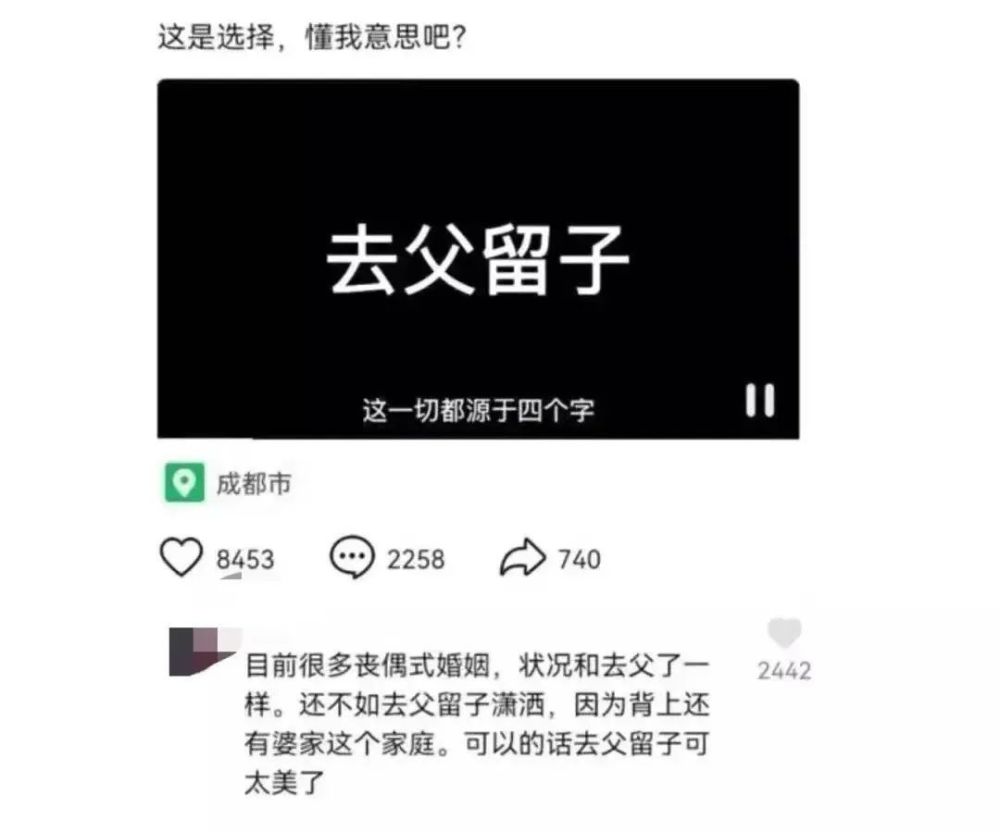 好的,假设你现在有足够的成本去支撑“去夫留子”这件事,你要做好的,还有接受舆论指责的准备。