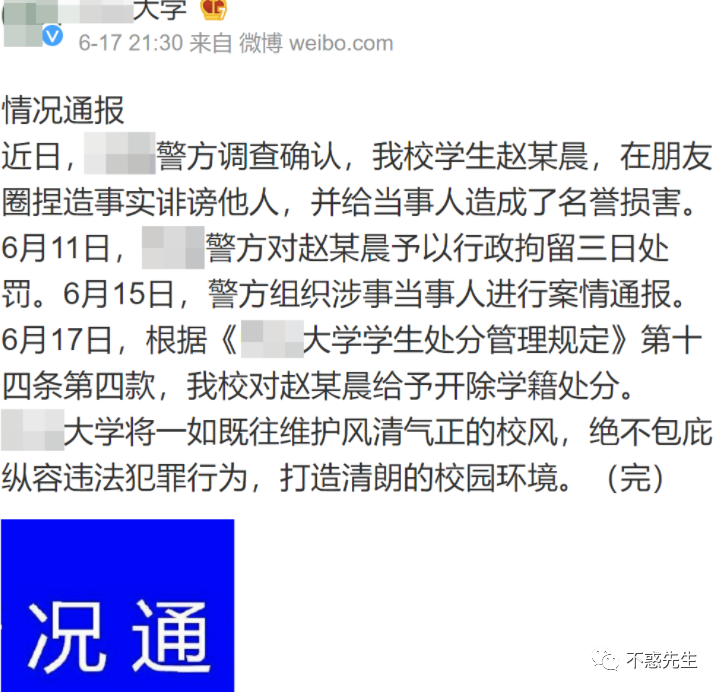 而最后对赵某晨伪造裸照聊天记录等资料造谣,也只是拘留了3日+开除学籍。