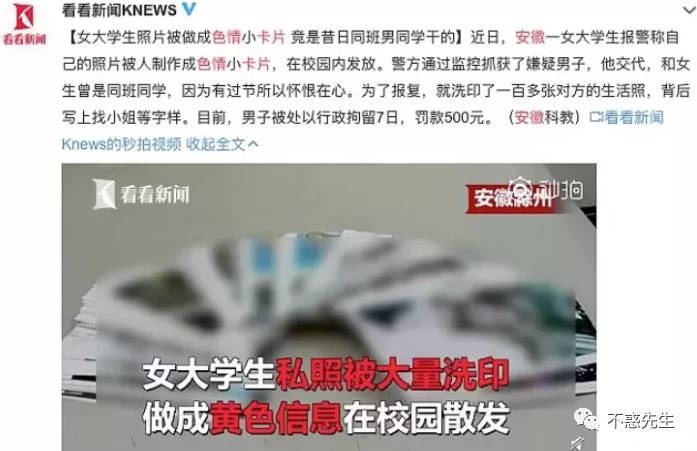 曾经一名安徽的女大学生无意间发现,自己的照片被印在了招嫖卡片上,背面写着“找小姐”之类的宣传语。
