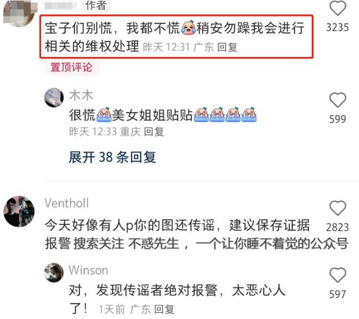 有不少网友过来提醒女孩,她的照片被有心人拿去恶意p图了。