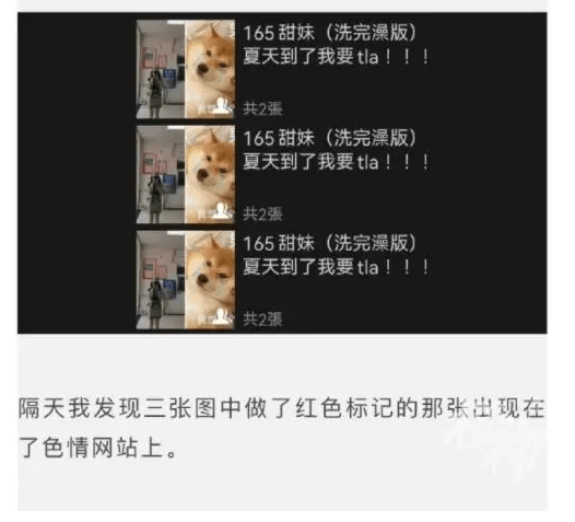 而是自己的照片被人拿去p成了裸照,用来造谣。
