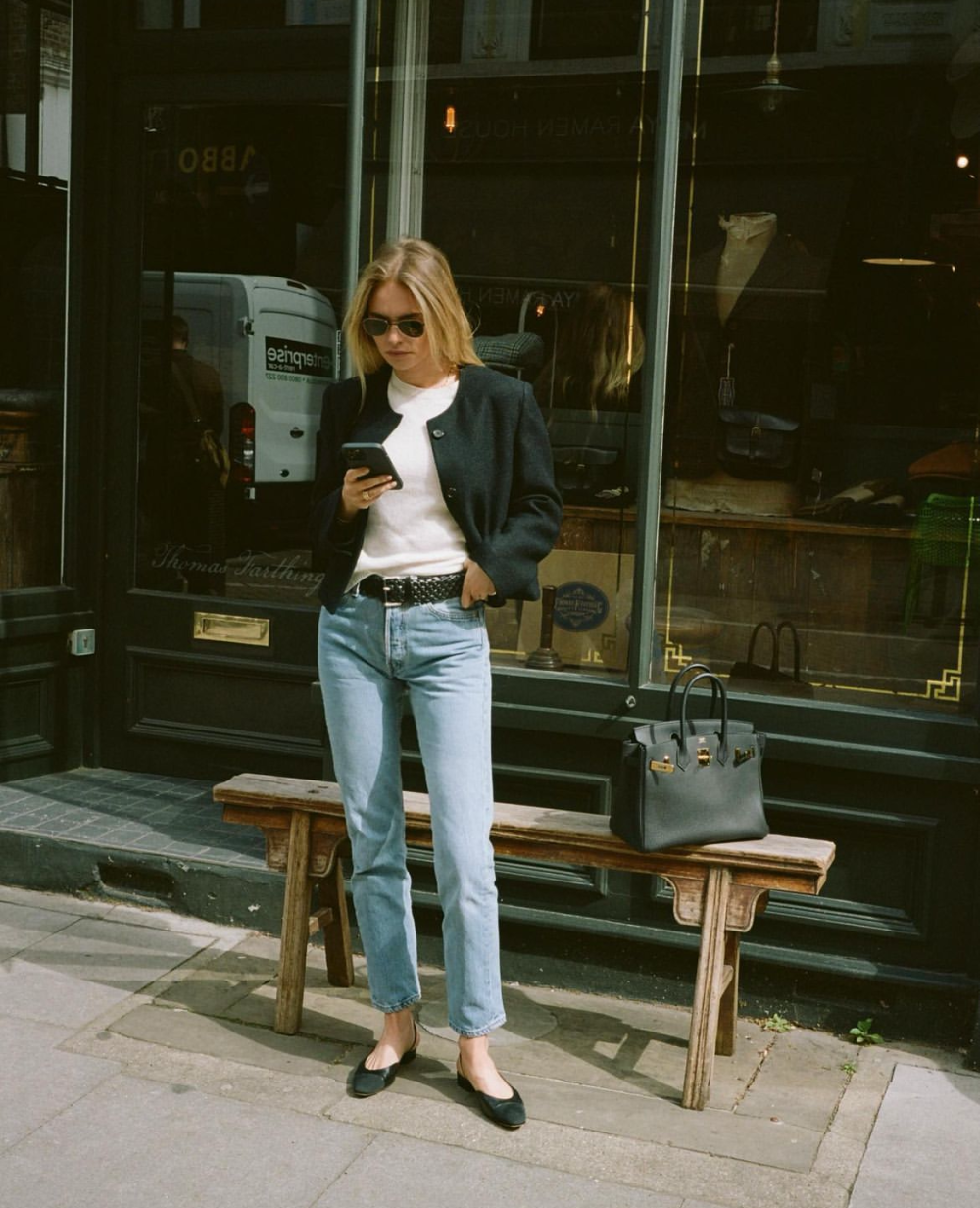 小白裤和小黑裤虽然出镜率也很高,但若是论起实用性,蓝色直筒款式的牛仔裤当属第一,再加上一个九分露出脚踝的设定,搭配起来就更加地顺手了。