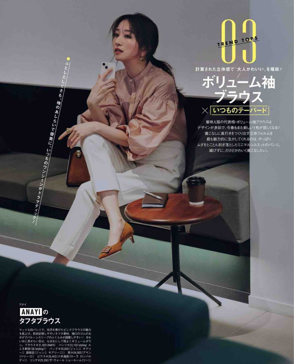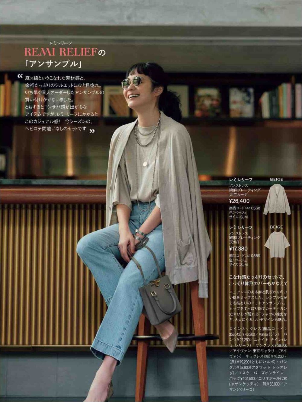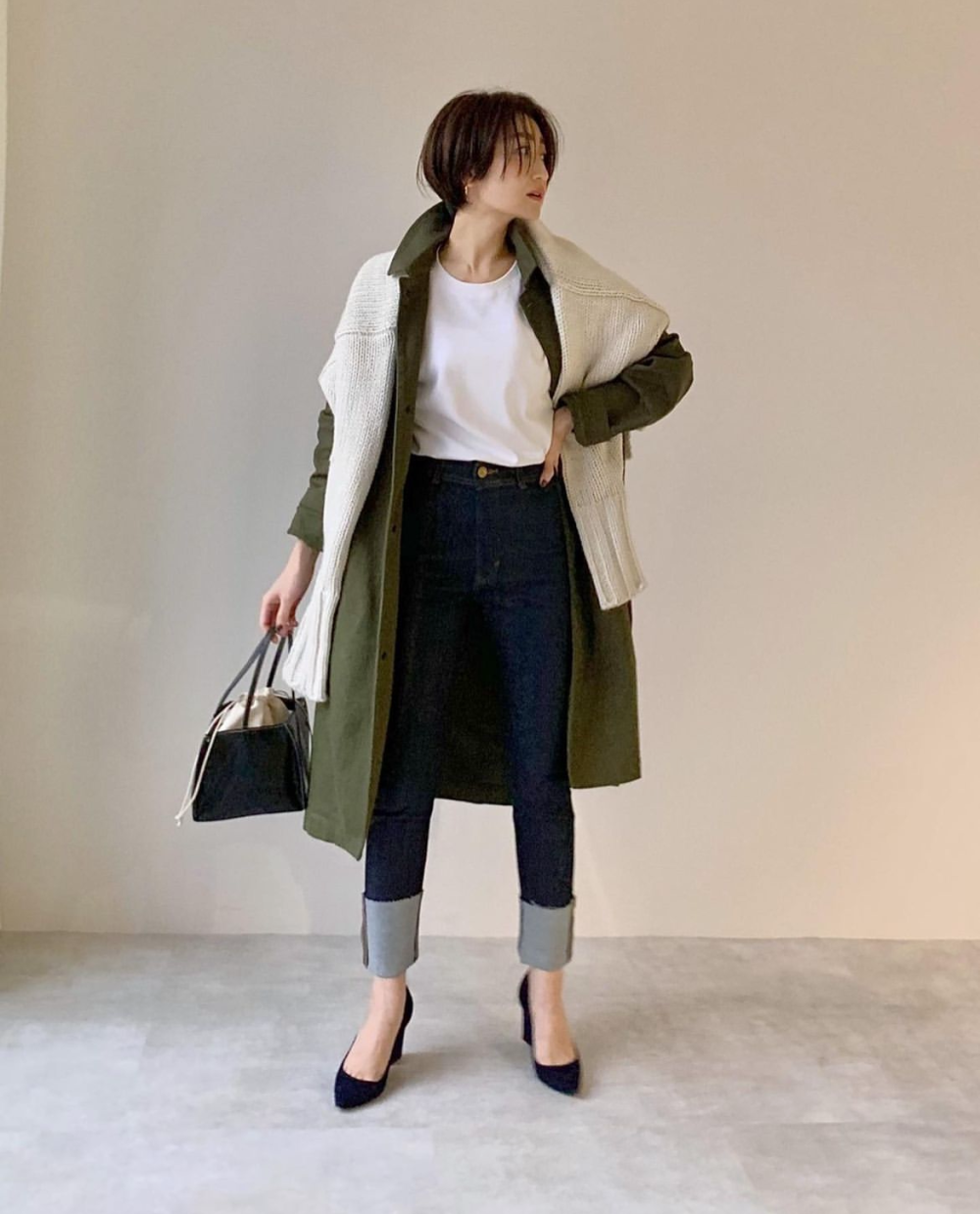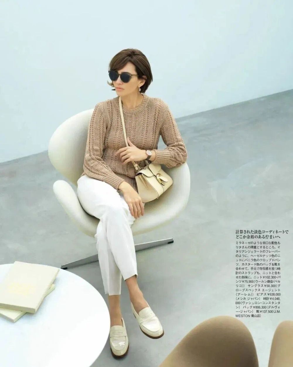 在日杂示范的穿搭中,简约通常会与「都市风」、「大女人」这些关键词联系在一起,一件冷调奶咖色的薄款针织上衣+水洗蓝色九分牛仔裤,清冷淡雅的色调、为穿着者的气质也蒙上了一层疏离舒适的氛围感。