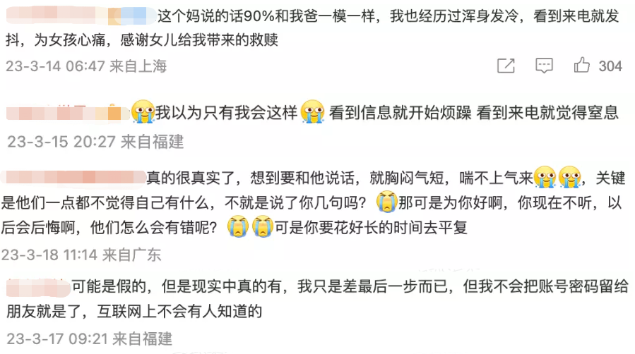 “这个妈说的话90%和我爸一模一样,我也经历过浑身发冷,看到来电就发抖。”
