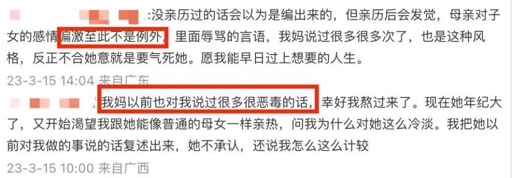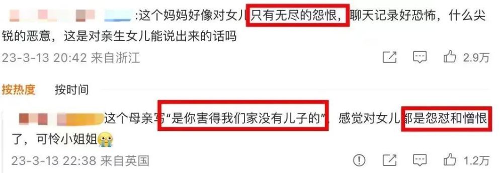 旁观的网友,也能感受到妈妈对女儿的怨恨。