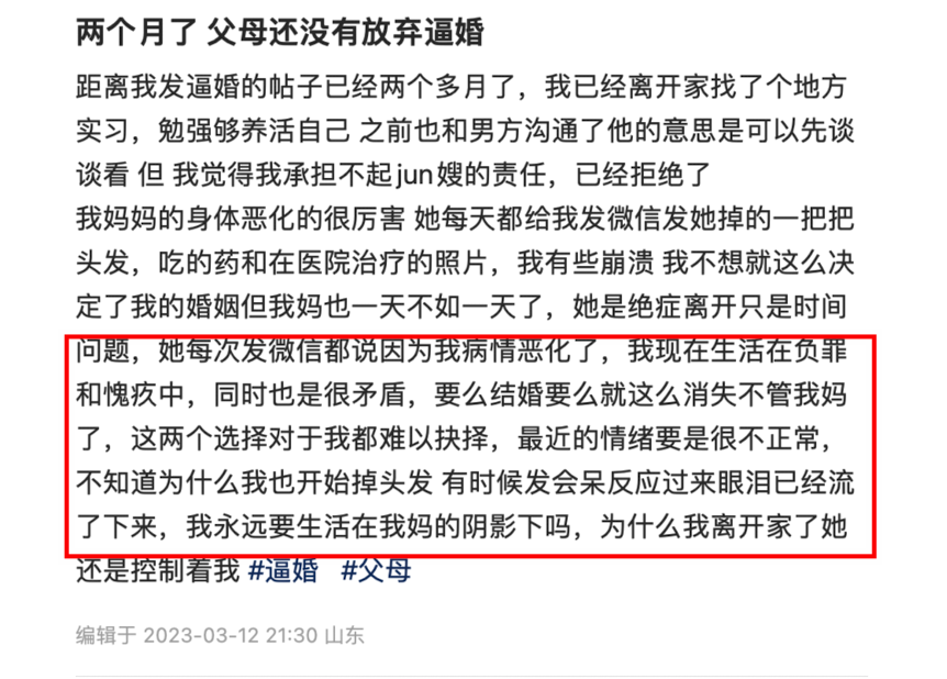 她被父母连续3年催婚,母亲的攻势从温和逐渐变得残酷甚至恶毒。