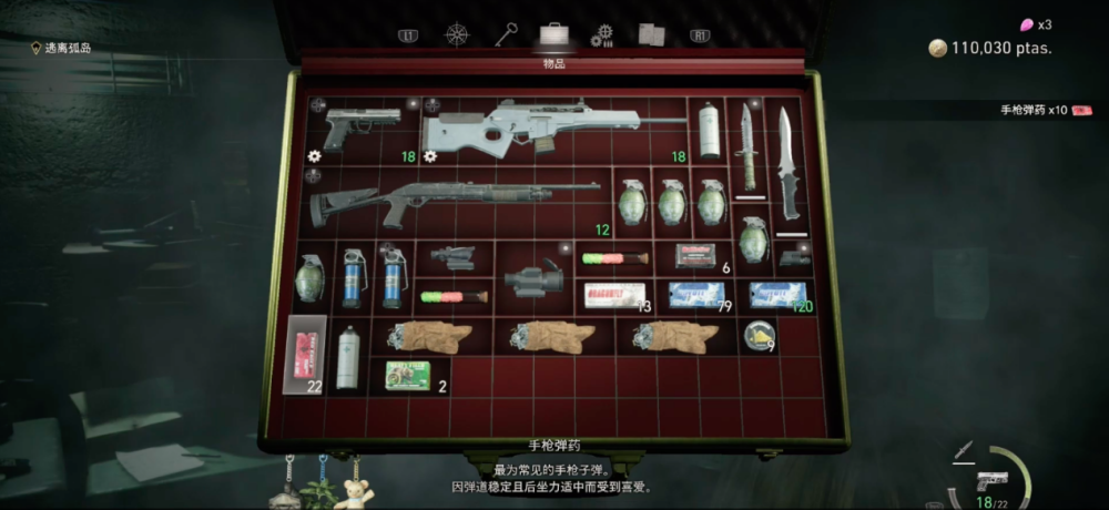 最后,也是评测章节中我最想要阐述的一点,那就是整体难度的提升,别小看它,所谓牵一发而动全身。展开来说,由于对手相比古早时期强上万倍——他们起身速度更快,攻击欲望也更加强烈——时不时就要给玩家们送上一个温暖的抱抱,而压迫感十足的凶悍敌人,必然引发缺草药少子弹状况的频繁发生,加之匕首新增的耐久度设定,每把刀具还要占据格子,以及物资+火药合成弹药的新系统,这些都催生了资源管理思路和玩法的改变——比起原作,玩家在进一步思考手提箱的空间使用,武器道具的取舍外,也需要更大限度的探索地图以便获取资源。