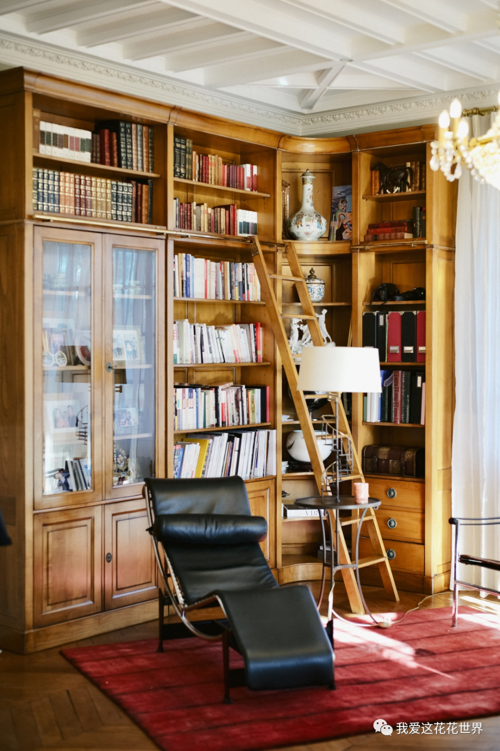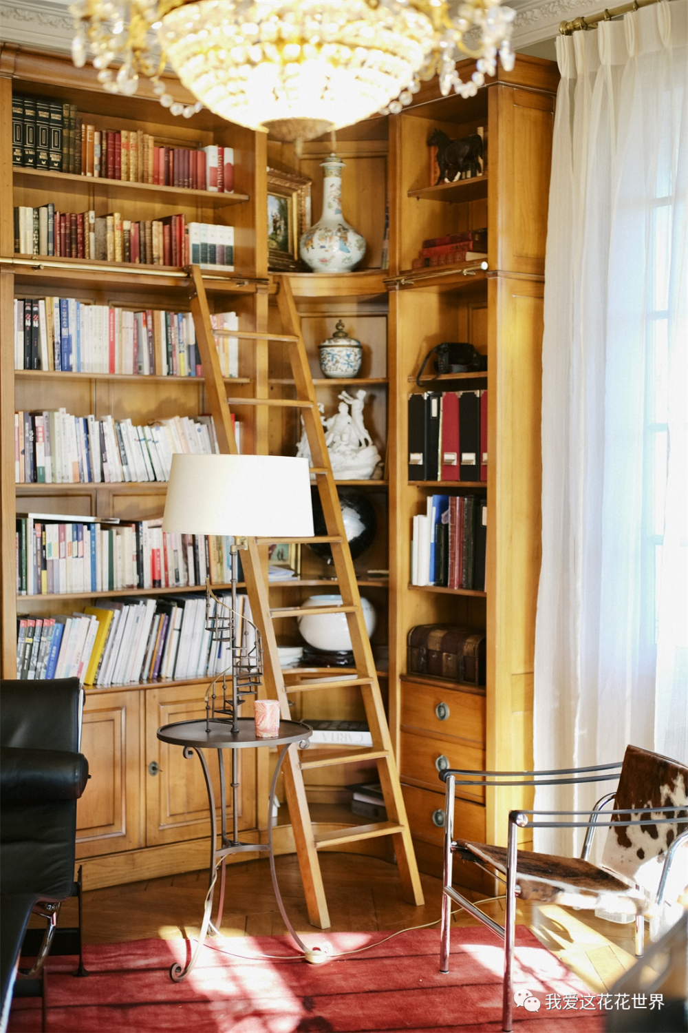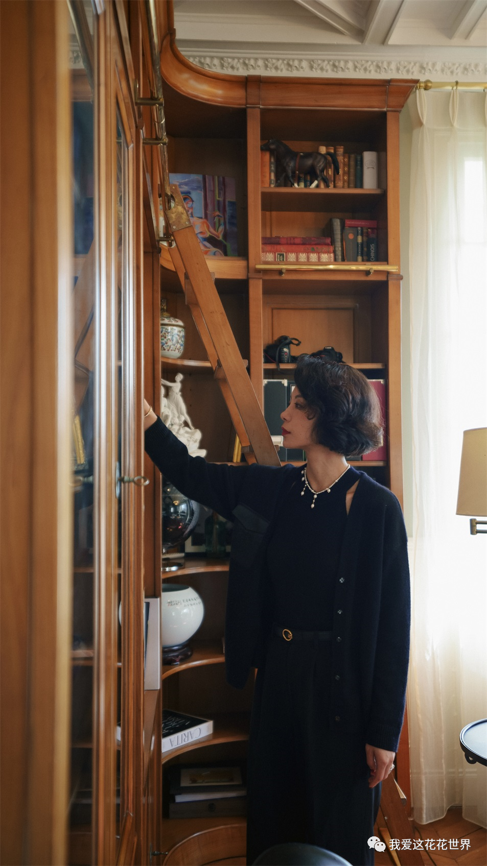 从法式格子窗透进来的柔光,让书房氤氲着暧昧的气息,恍惚间,以为是哪部电影里的场景,能想象到Jinger日常踩在扶梯上拿书,回头看见爱人的一抹温柔。