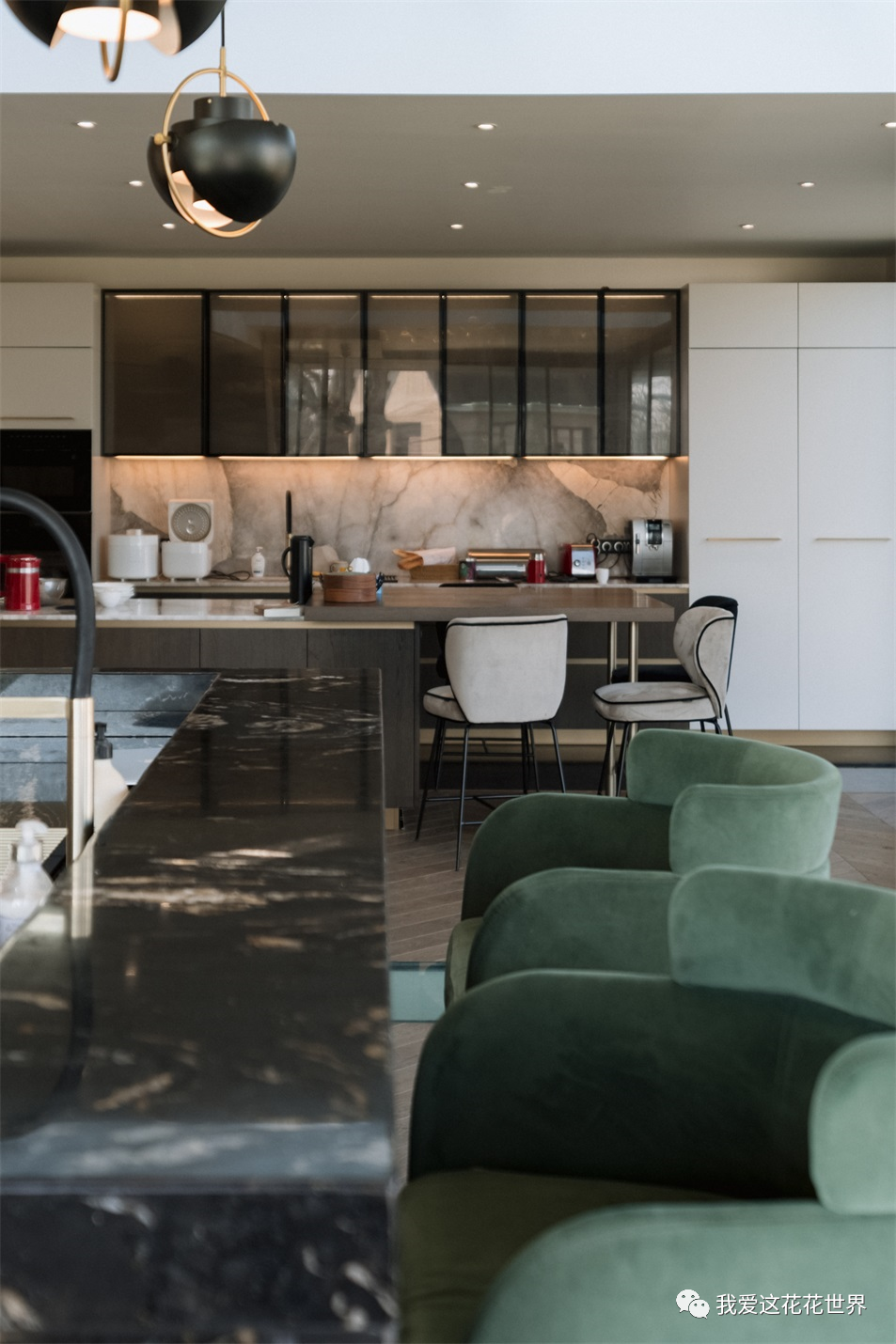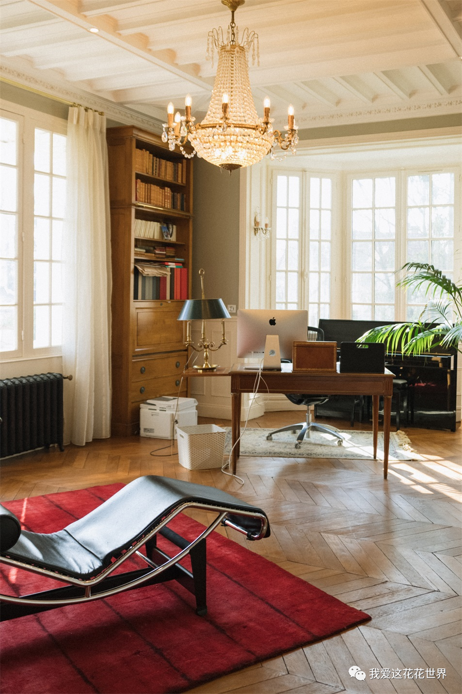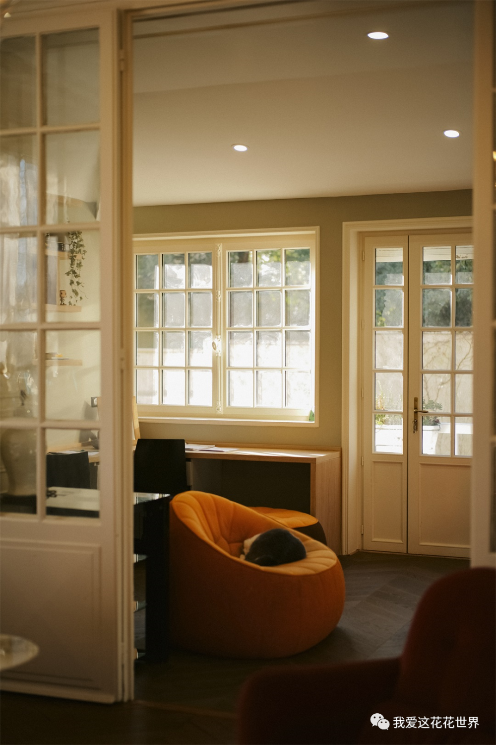 从法式格子窗透进来的柔光,让书房氤氲着暧昧的气息,恍惚间,以为是哪部电影里的场景,能想象到Jinger日常踩在扶梯上拿书,回头看见爱人的一抹温柔。