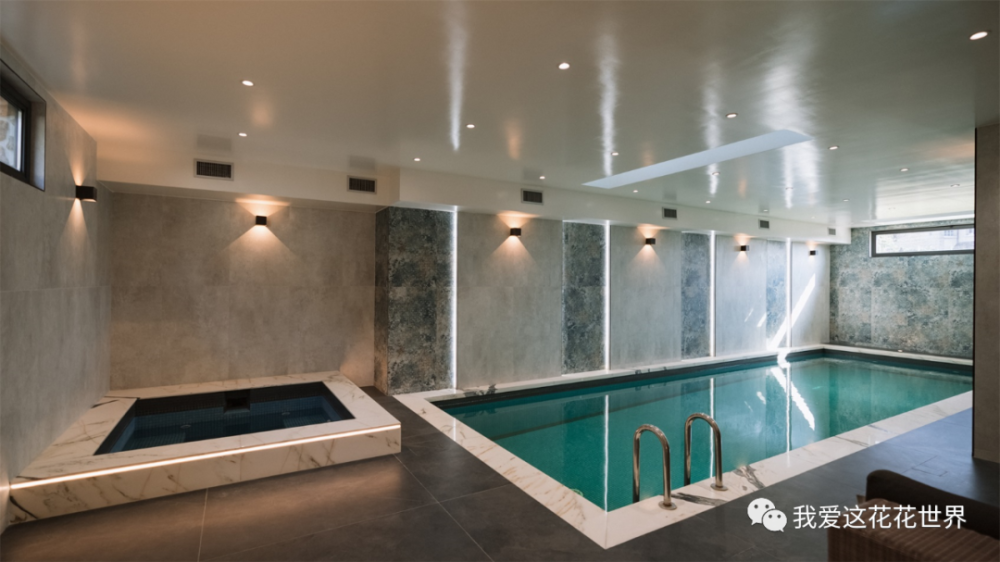 这里有带有小扶梯的书房,尖顶小阁楼,地下室还有上百平米的健身房和游泳池、酒窖,足不出户也能自娱自乐。