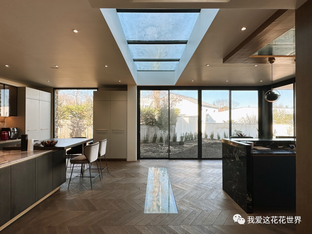 原始的房子一楼,到这儿就走完了。但这么美的房子,竟然没有露台?Jinger觉得不可思议,所以她在一楼连接花园的地方,建起了通透的开放式厨房、酒吧和露台,把室外的风景引入到室内。