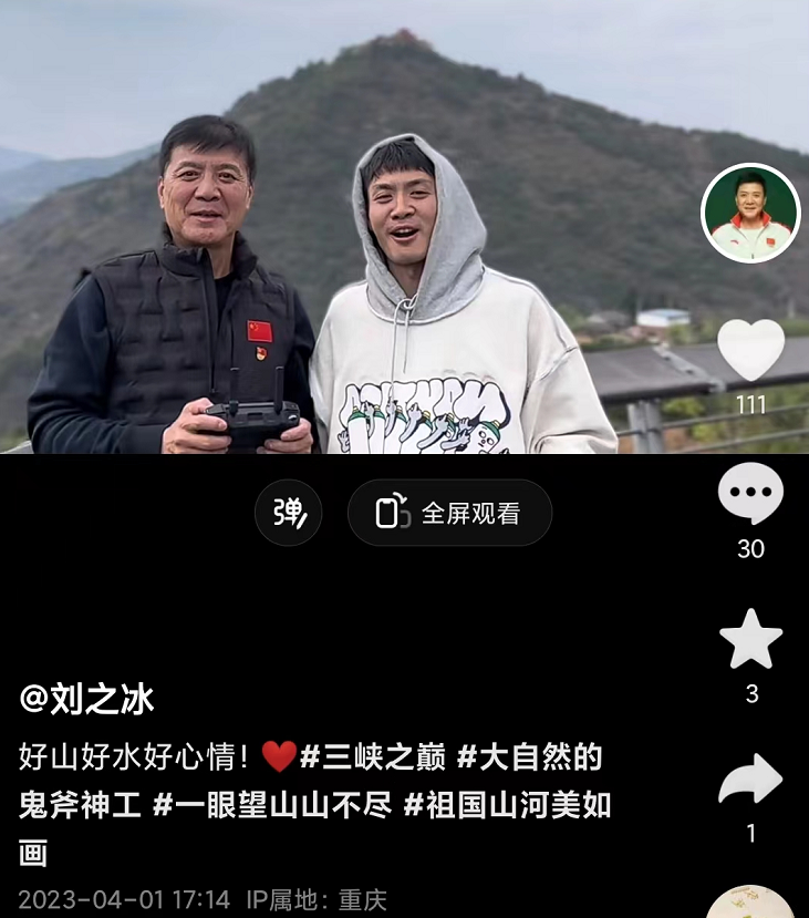 4月1日,资深演员刘之冰在个人社交账号上分享了一段视频,并配文称,好山好水好心情!