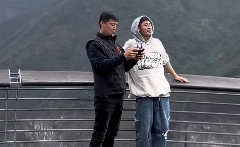 刘思博说道,3月30日是我爸爸60岁生日,我们父子俩在重庆市奉节县夔门,三峡之巅。