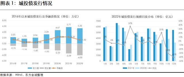 2022年,城投行业监管政策总体偏紧,城投债发行规模呈现缩量,净融资降幅明显