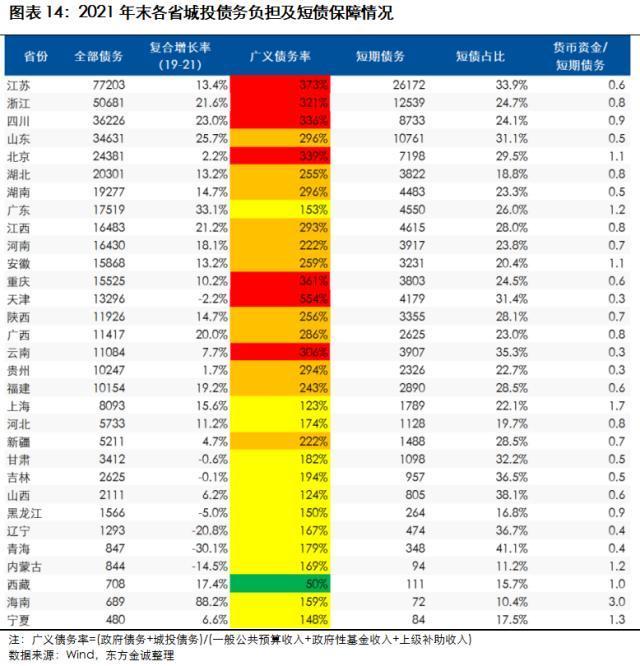 2022年各省综合财力降幅较为明显,多数省份地方政府债务率及广义债务率均有较大抬升,天津、吉林、重庆等省增幅最大